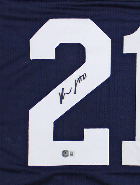 An Auburn Custom Blue Jersey hand signed by Kerryon Johnson. The item and signature are in excellent condition. Kerryon was 2017 SEC Player of the Year, 2017 First-Team, and 2017 SEC Offensive Player of the Year. All-SEC. AUTHENTICATION: The item is accompanied by a Beckett Serial Numbered and Databased Hologram
