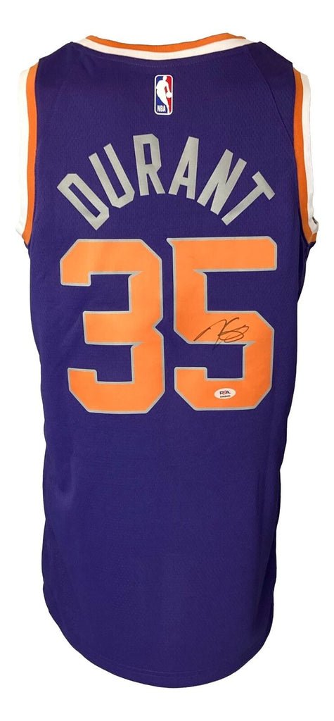 Featured is a Kevin Durant signed Phoenix Suns Nike Swingman jersey. This jersey has been hand signed by Durant and comes with the Beckett hologram and certificate of authenticity. This jersey is size 52.. SPECIFICATIONS Autographed By: Kevin Durant Team: Phoenix Suns Sport: Basketball Authentication: Professional Sports Authenticator (PSA)