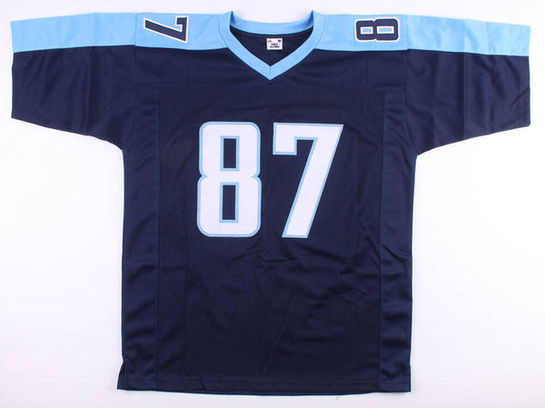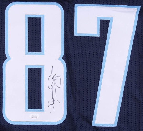 Custom on-field style jersey. Everything is sewn on, size XL. Hand-signed in black felt-tip pen by Kevin Dyson.The Music City Miracle was a play that took place on January 8, 2000, during the NFL 1999-2000 playoffs. It occurred at the end of the AFC Wild Card playoff game between the Tennessee Titans and Buffalo Bills at Tennessee. After the Bills had taken a 16-15 lead on a field goal with 16 seconds remaining in the game, on the ensuing kick-off return, Titans tight end Frank Wycheck threw a lateral pass across the field to Kevin Dyson, who then ran 75 yards to score the winning touchdown to earn a 22-16 victory. The lot / autograph(s) includes an official James Spence Authentication (JSA) hologram and matching COA for authenticity purposes. The signing of this item was witnessed by JSA.Authentication: JSA COA