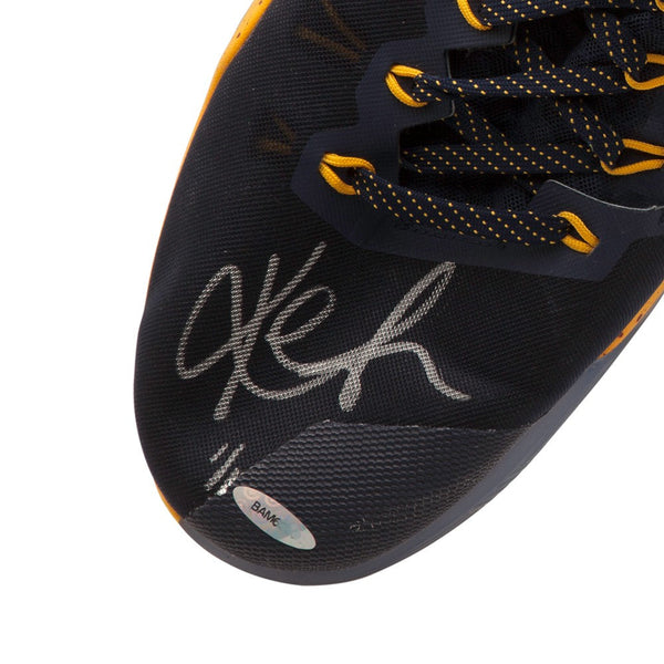 Upper Deck Authenticated produces some of the world's most creative sports memorabilia. On occasion, we offer an opportunity for sports fans to get closer to the game than anyone else. Our latest offering is autographed game-worn shoes from All-Star forward Kevin Love. One of the top big men in the NBA, he is versatile enough to play the 4 or 5 on both ends of the court. In 2016-17, he returned to All-Star Game status as well as returning to averaging a double-double. UDA is offering limited edition game-worn signed and inscribed shoes of the All-Star power forward. All of them were worn in the 2016-17 season and were procured directly from the Cleveland Cavaliers. All of them have the inscribed season on them. Love has signed the right shoe of this limited edition (1) Nike Hyperdunk pair in silver paint pen. He has also inscribed "2016-17" in silver on the left shoe. His signature and inscription are deemed authentic by virtue of Upper Deck Authenticated's Five-Step Process.