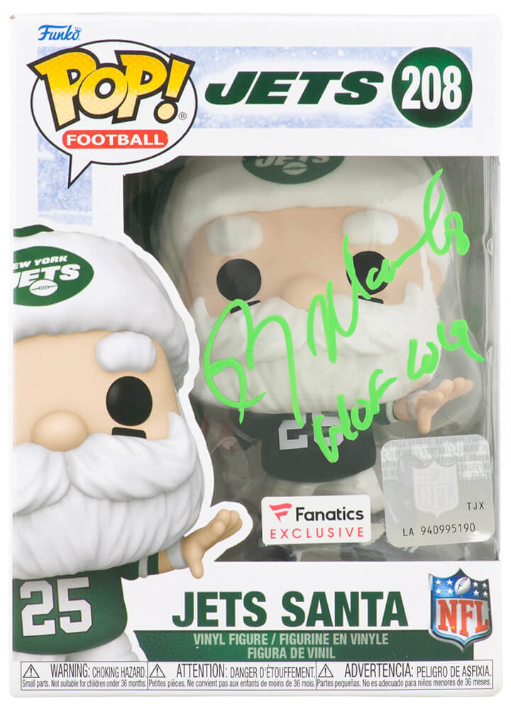 Kevin Mawae signed New York Jets 'SANTA' Funko Pop doll #208 with 'HOF 2019' inscription. Item comes with a Schwartz Sports Memorabilia tamper-proof numbered hologram and Certificate of Authenticity which can be verified online.