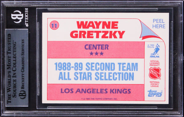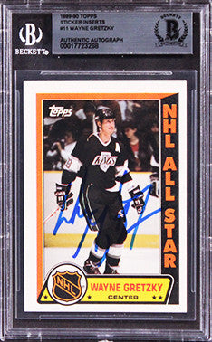 This Autographed 1988 Topps Sticker Inserts #11 Card has been Personally Signed by Wayne Gretzky of the Los Angeles Kings. This item is 100% Authentic, it comes slabbed and authenticated by Beckett Authentication Services. The authenticity can be verified on Beckett Authentication Services website.
