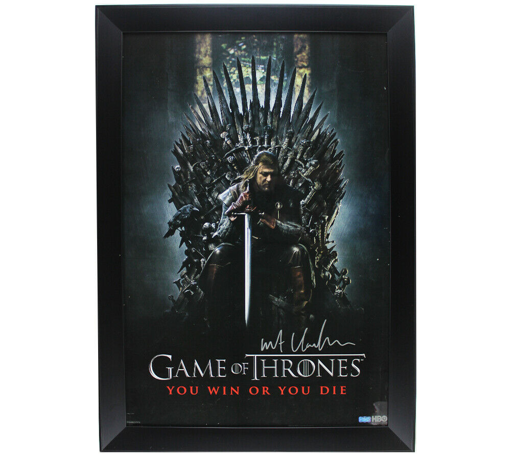 A Game of Thrones Framed Ned Stark Poster hand signed by Kit Harington. The item and signature are in excellent condition. The frame measures approximately 28" x 44". Kit rose to prominence for his breakthrough role as Jon Snow in the HBO television series Game of Thrones, which brought him international recognition. He has been nominated for a Primetime Emmy Award for Outstanding Supporting Actor in a Drama Series and a Critics Choice Television Awards for Best Supporting Actor in a Drama Series. AUTHENTICATION: The item is accompanied by a Certificate of Authenticity - Serial Numbered and Databased Hologram