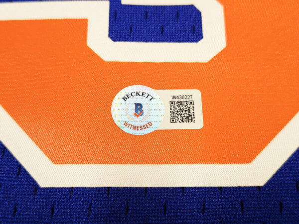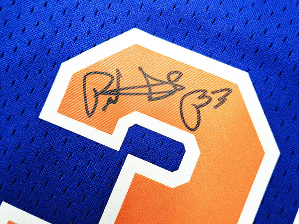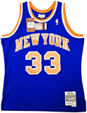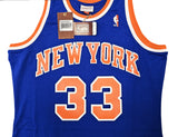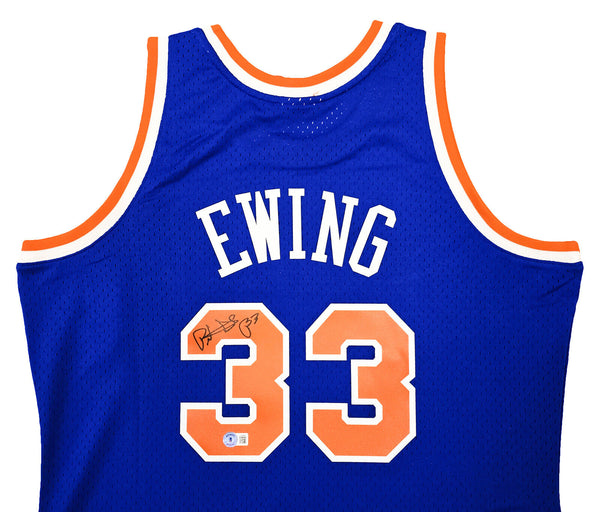 This is a Blue Authentic Mitchell & Ness New York Knicks 1991-92 HWC Swingman Jersey that has been hand signed by Patrick Ewing. This jersey is Size L. This item has been witnessed and certified authentic by Beckett Authentication (BAS) and comes with their tamper-proof witness sticker. Beckett Authentication has recently changed their physical certificate card policy where they no longer match their tamper-proof sticker with a physical certificate. A certificate can be printed on Beckett's website for the matching authentication number.