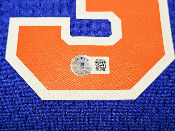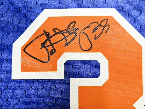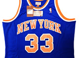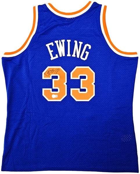 This is a Blue Authentic Mitchell & Ness New York Knicks 1991-92 HWC Swingman Jersey that has been hand signed by Patrick Ewing. This jersey is Size XL. This item has been witnessed and certified authentic by Beckett Authentication (BAS) and comes with their tamper-proof witness sticker. Beckett Authentication has recently changed their physical certificate card policy where they no longer match their tamper-proof sticker with a physical certificate. A certificate can be printed on Beckett's website for the matching authentication number.
