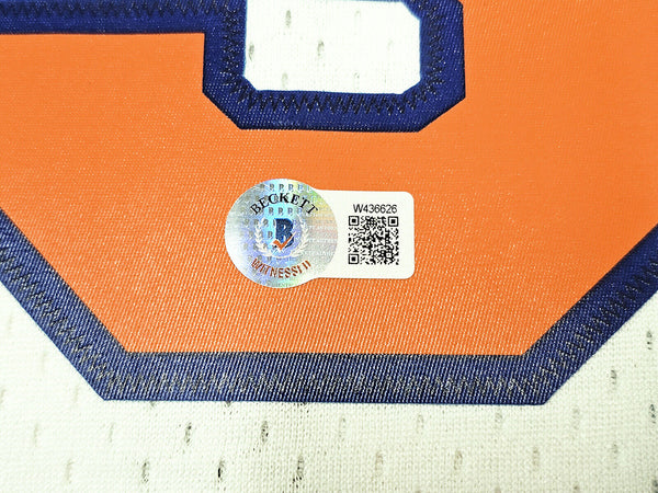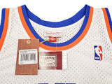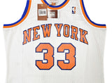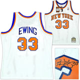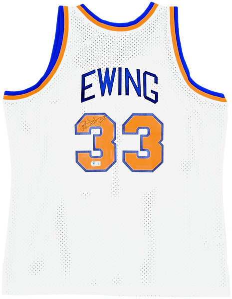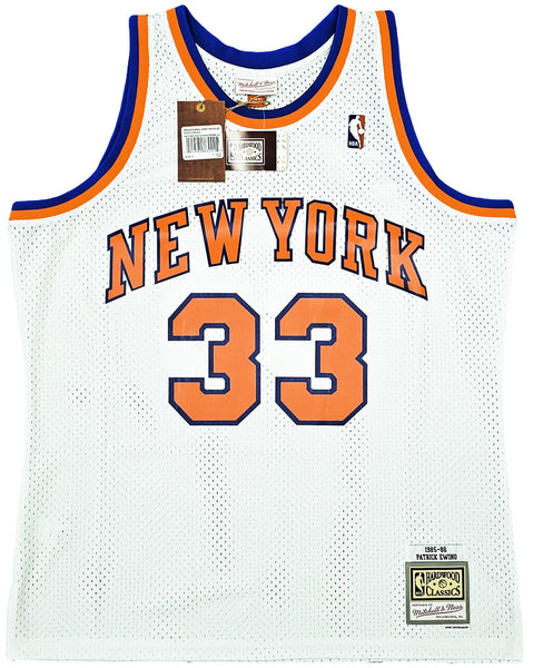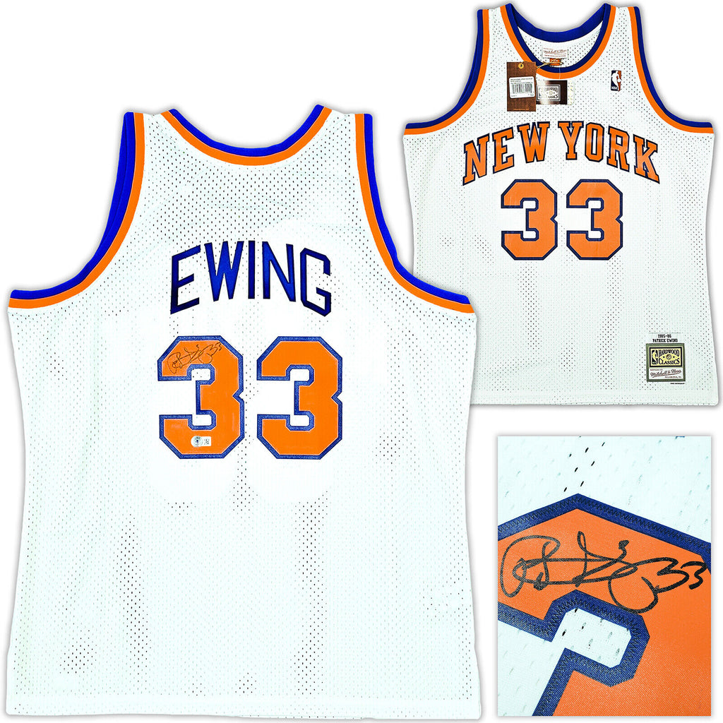 This is a White Authentic Mitchell & Ness New York Knicks 1985-86 HWC Swingman Jersey that has been hand signed by Patrick Ewing. This jersey is Size XL. This item has been witnessed and certified authentic by Beckett Authentication (BAS) and comes with their tamper-proof witness sticker. Beckett Authentication has recently changed their physical certificate card policy where they no longer match their tamper-proof sticker with a physical certificate. A certificate can be printed on Beckett's website for the matching authentication number.