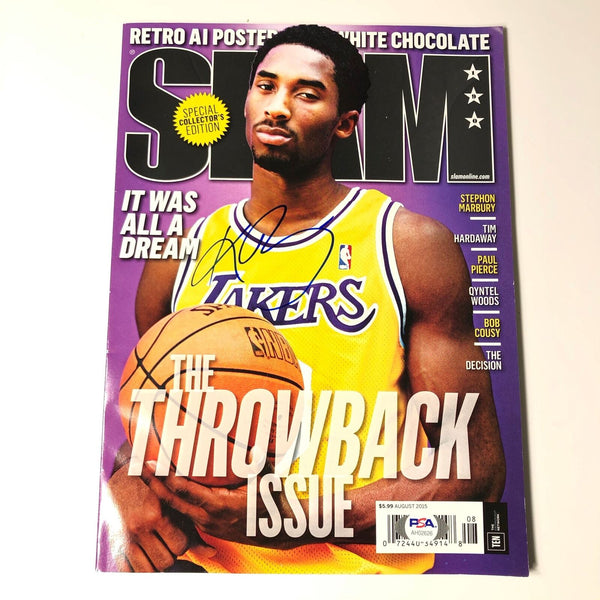 Slam Magazine signed by Lakers Legend Kobe Bryant. The autograph of Kobe on this magazine was authenticated by a team of experts at PSA/DNA so you can rest assured you are purchasing the real deal. This item also comes with a letter of authenticity from PSA.