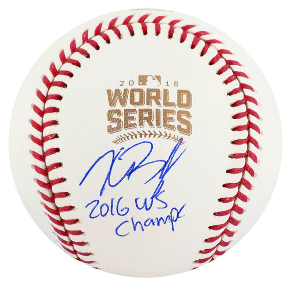 Kris Bryant signed Rawlings official 2016 World Series logo baseball with '2016 WS Champs' inscription. Item comes with a Schwartz Sports Memorabilia tamper-proof numbered hologram and Certificate of Authenticity which can be verified online.