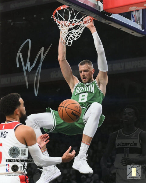 Kristaps Porzingis Boston Celtics Signed Dunk Spotlight 16x20 Photo BAS