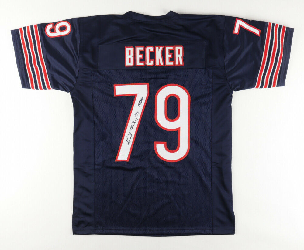 Custom on-field style jersey. Everything is sewn on, size XL. Hand-signed and inscribed by Kurt Becker.The lot / autograph(s) includes an official James Spence Authentication (JSA) hologram and matching COA for authenticity purposes. The signing of this item was witnessed by JSA.Authentication: JSA COA