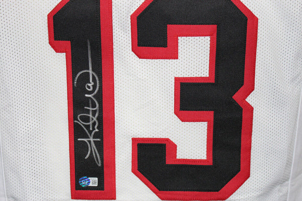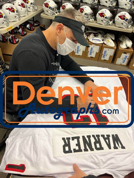 Kurt Warner Autographed AFL Iowa Barnstormers White XL Jersey Beckett 35838 The number in the listing title is just an inventory sku for our records and is not the authentication number. The item pictured is a stock photo unless otherwise noted. This is a custom AFL style white XL jersey with sewn on name and numbers that was personally autographed by Kurt Warner. Includes a certificate of authenticity from Beckett Authentication Services (BAS) and Denver Autographs.