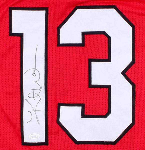 Custom on-field style jersey. Everything sewn on, size XL. Hand-signed in black felt-tip pen by Kurt Warner (St Louis Rams, Arizona Cardinals). The autograph includes an official James Spence Authentication (JSA) hologram and matching COA for authenticity purposes.Authentication: JSA COA