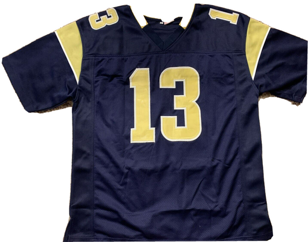 Custom on-field style jersey. Everything is sewn on, size XL. Has been hand-signed by Kurt Warner (HOF).The lot / autograph(s) includes an official James Spence Authentication Services serially numbered hologram and matching COA for authenticity purposes.Authentication: JSA COA