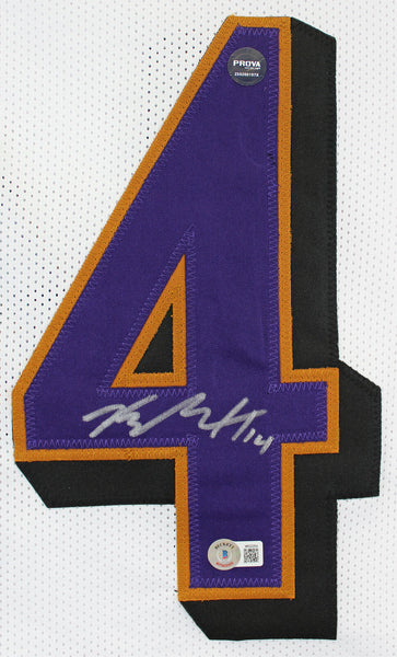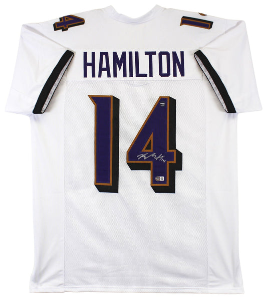 This Autographed White Pro Style Jersey has been Personally Signed by Kyle Hamilton of the Baltimore Ravens. This item is 100% Authentic to include a hologram by Beckett Authentication Services. This item will come with an affixed Beckett Authentication Services (BAS) authentication sticker, which includes a scannable QR code to verify authenticity. Please note that Beckett no longer provides serial-numbered COA cards, and the attached BAS sticker will serve as the complete authentication for this item. This is a BAS Witnessed Protection Program item which means a Beckett Authentication Service representative was present when this item was being signed. We conducted an autograph signing with Kyle Hamilton where multiples of the same item were signed. While the photographs are representative of this item, the size, placement and strength of the signature may vary. Each item is hand signed, therefore, each autograph is unique. This item can be verified through BAS Witnessed. This is a X-Large sized, non-branded, custom-stitched Jersey.