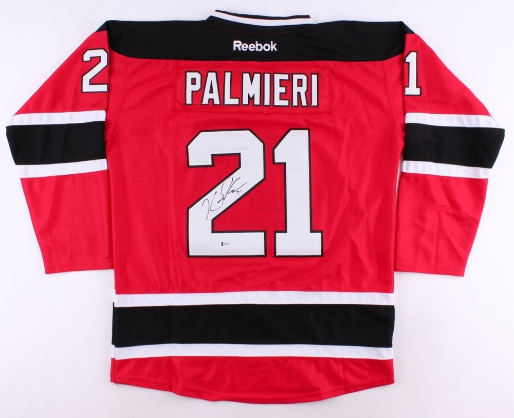 Reebok on-ice style jersey. Everything is sewn on, size 50. Hand-signed in black felt-tip pen by Kyle Palmieri (Ducks). The autograph includes an official Beckett Authentication Services serially numbered hologram and matching COA for authenticity purposes.Authentication: Beckett COA