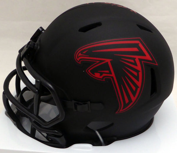 This is an Atlanta Falcons Eclipse Speed Mini Helmet that has been hand signed by Kyle Pitts. This item has been certified authentic by Beckett Authentication (BAS) and comes with their tamper-proof QR Code sticker that can be verified on the Beckett-authentication.com.