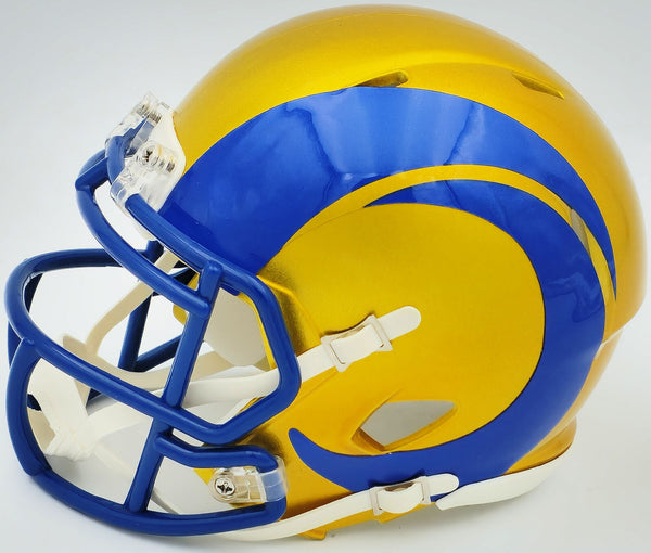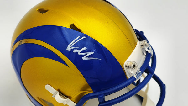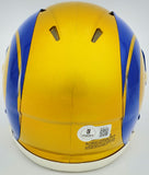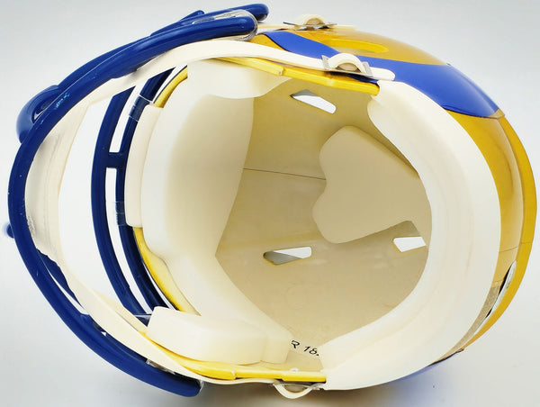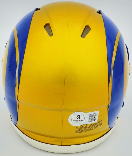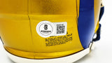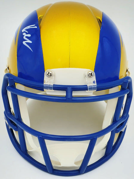 This is a Los Angeles Rams Flash Yellow Speed Mini Helmet that has been hand signed by Kyren Williams. The Flash helmets are delicate and may have some marks or scratches on them. This item has been witnessed and certified authentic by Beckett Authentication (BAS) and comes with their tamper-proof witness sticker.