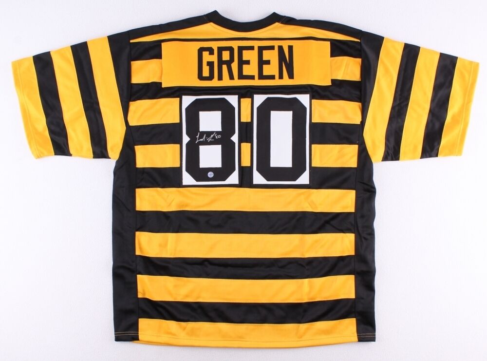 Custom on-field style jersey. Everything is sewn on, size XL. Hand-signed in silver paint pen by Ladarius Green. The autograph includes an official Total Sports Enterprises (TSE) hologram and matching COA for authenticity purposes. Authentication: Total Sports Enterprises COA