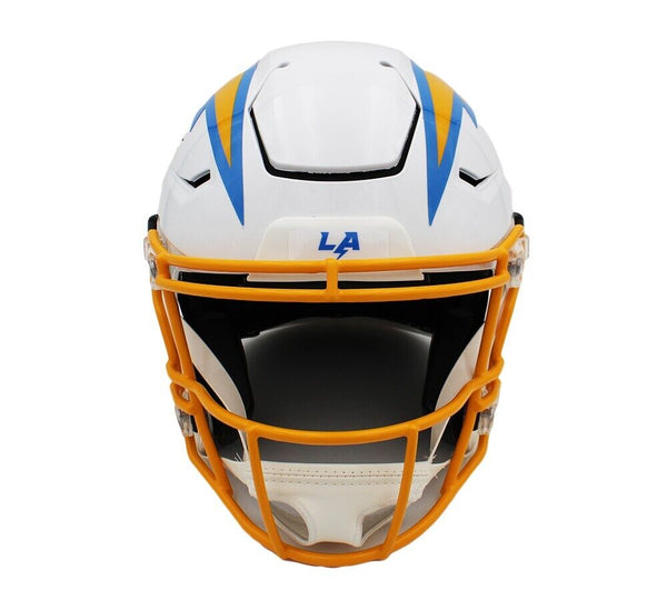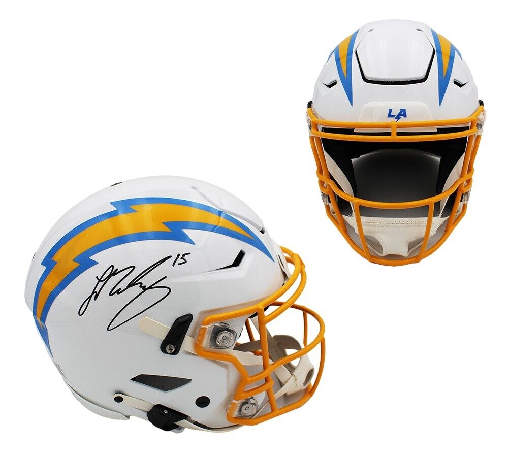 A Los Angeles Chargers Speed Flex Authentic NFL Helmet hand signed by Ladd McConkey. The item and signature are in excellent condition. Ladd was a wide receiver for the Georgia Bulldogs winning two National Championships (2021, 2022) and was drafted into the NFL in the second round in 2024 by the Los Angeles Chargers. AUTHENTICATION: The item is accompanied by a Beckett Authentic Serial Numbered and Databased Hologram
