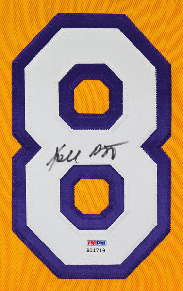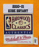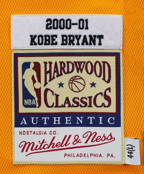 This Autographed Yellow 2000-01 Mitchell & Ness Hardwood Classics Authentic Jersey has been Personally Signed by Kobe Bryant of the Los Angeles Lakers. This item is 100% Authentic and comes with a PSA/DNA Certification Card and a matching numbered Hologram. The authenticity can be verified on Professional Sports Authenticator website. This is a Large sized Jersey.