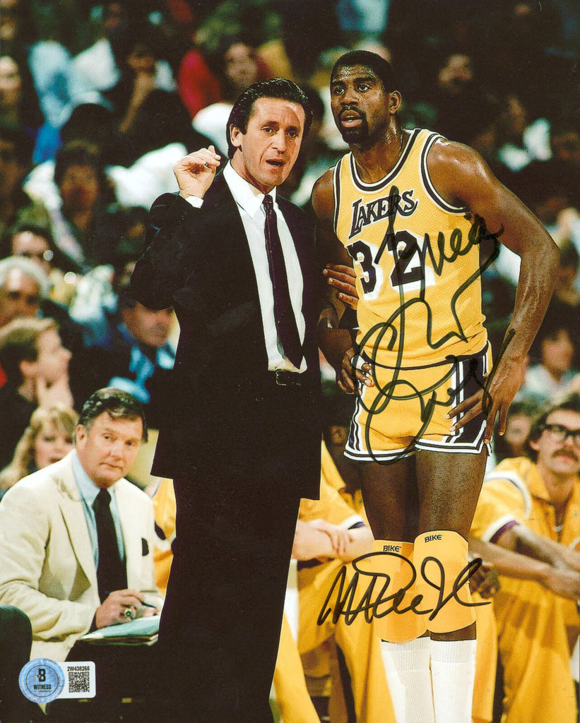 This Autographed 8x10 Photo has been Personally Signed by Magic Johnson & Pat Riley of the Los Angeles Lakers. This item is 100% Authentic to include a hologram by Beckett Authentication Services. This item will come with an affixed Beckett Authentication Services (BAS) authentication sticker, which includes a scannable QR code to verify authenticity. Please note that Beckett no longer provides serial-numbered COA cards, and the attached BAS sticker will serve as the complete authentication for this item. The authenticity can be verified on Beckett Authentication Services website.