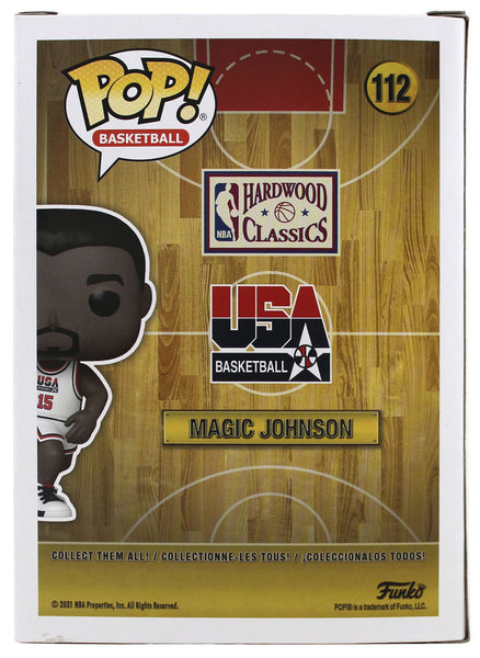 This Autographed USA Basketball #112 Funko Pop Vinyl Figure has been Personally Signed by Magic Johnson of the Los Angeles Lakers. This item is 100% Authentic to include a Certificate of Authenticity (COA) / hologram by Beckett Authentication Services. This is a BAS Witnessed Protection Program item which means a Beckett Authentication Service representative was present when this item was being signed. This is a stock item. We conducted an autograph signing with Magic Johnson and we have several of these available. The one you will receive will be of equal quality to the one pictured. This item can be verified through BAS Witnessed.