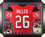 Custom frame measures approximately 35" x 43" in size and features a jersey which has been hand-signed in black felt-tip pen by Lamar Miller (Dolphins).The autograph includes an official James Spence Authentication (JSA) hologram and matching COA for authenticity purposes. The signing of this item was witnessed by JSA.Authentication: JSA COA