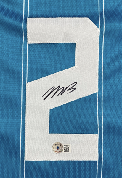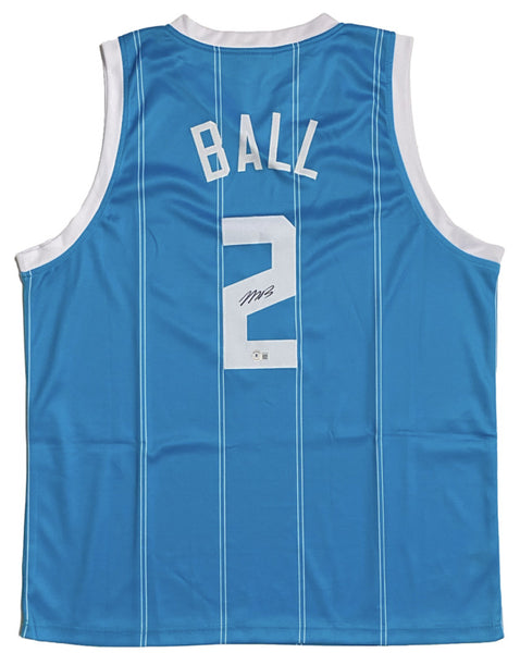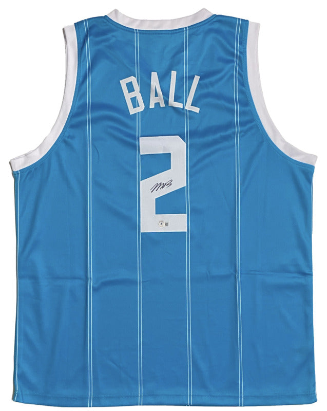 LaMelo Ball Autographed Custom Hornets #2 Teal Jersey Beckett Includes hologram! Ball's signature is guaranteed authentic through the Beckett hologram system. MONEY BACK GUARANTEE! If for any reason you are not completely satisfied with the quality or authenticity of your purchase, we will gladly give you a full refund or exchange, whichever you prefer up to 30 days after purchase. Please feel free to e-mail us with any questions. Thank you. Authenticator Pre-Certified Authenticator: Beckett Authenticated History of item: LaMelo Ball has signed this item in the presence of a representative from Beckett. Describe how you came to possess this item: Super Sports Center is a fully authorized dealer for Upper Deck Authenticated as well as Mounted Memories and Steiner Sports. Other information about you and / or the item: Super Sports Center strives to deliver the most authentic in sports memorabilia from trusted companies like Mounted Memories, Steiner Sports and Upper Deck Authenticated. If it exists, we can find it for you!