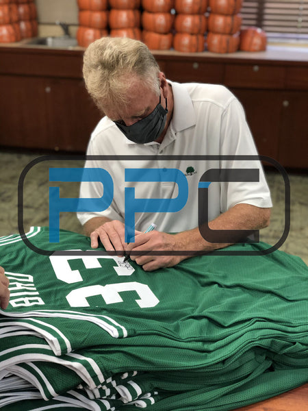 This Autographed Green Pro Style Jersey has been Personally Signed by Larry Bird of the Boston Celtics. This item is 100% Authentic to include a Certificate of Authenticity (COA) / hologram by Beckett Authentication Services. This is a stock item. We conducted an autograph signing with Larry Bird and we have several of these available. The one you will receive will be of equal quality to the one pictured. This item can be verified through BAS. This is a X-Large sized, non-branded, custom-stitched Jersey. The proof signing photo will not come with the item.