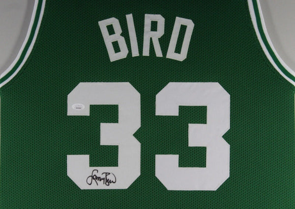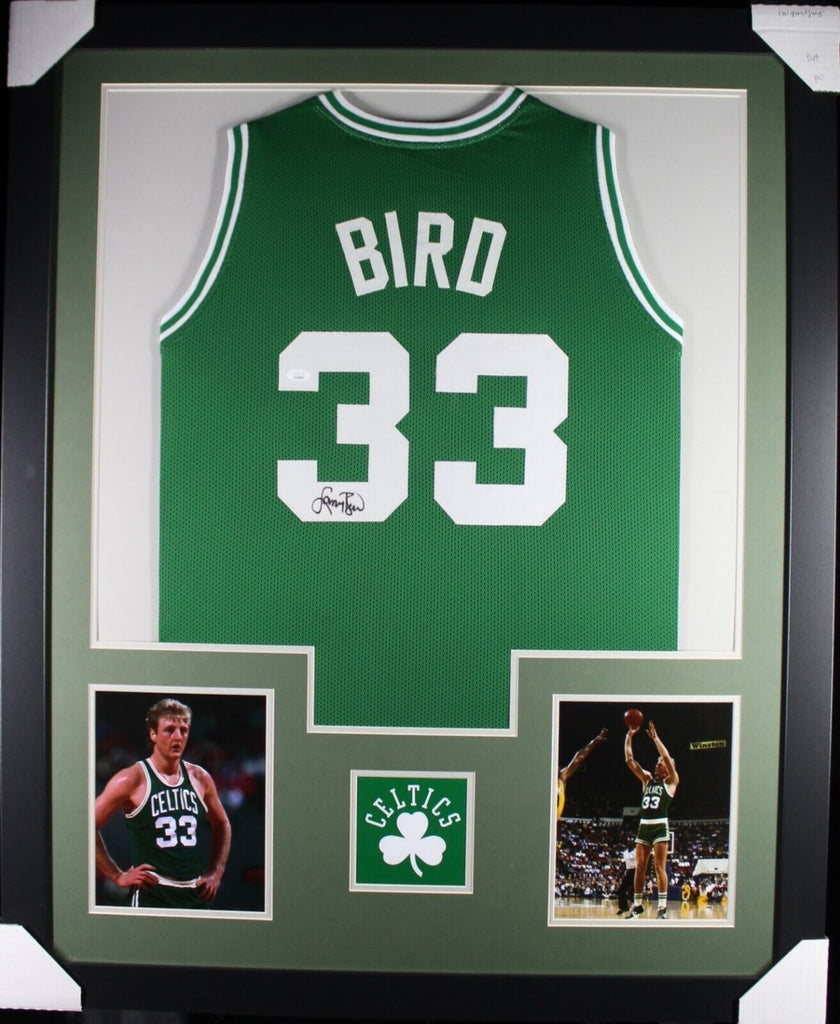 LARRY BIRD AUTOGRAPHED & PROFESSIONALLY FRAMED PRO-STYLE JERSEY(Occasionally our own stock pictures are used at times due to quantity of framing, all frames will look identical as the one pictured)THE FRAMED JERSEY MEASURES 35"x 44" & COMES WITH THE FOLLOWING:-UV Protected Acrylic-Triple Acid Free Team Colored Matting-2 High Quality 8"x10" Photos-Team LogoEvery framed autographed jersey is accompanied with a tamper-proof hologram on the signed part of the jersey from one of the main authenticators in the industry (JSA, Beckett, PSA, etc.) and can be verified on their corresponding websites to prove authenticity.