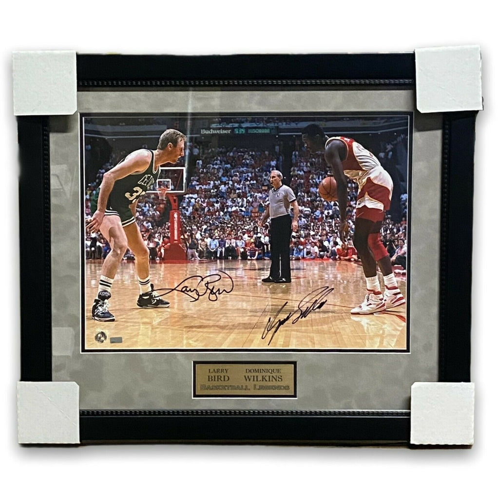 This 16x20 photo custom framed to 20x24 has been personally hand-signed by Larry Bird & Dominique Wilkins100% AuthenticCertificate of Authenticity by New England Picture & has Larry Birds official hologramExact location of signature may vary