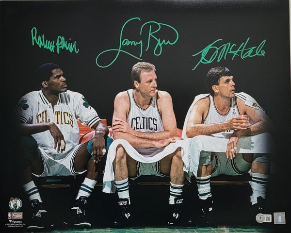 Larry Bird Kevin McHale Robert Parish Signed Celtics Spotlight 16X20 Photo BAS