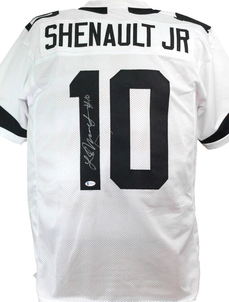 Laviska Shenault Jr Autographed White Pro Style Jersey - Beckett W *Silver THIS IS NOT AN NFL JERSEY. THIS HAS NO TAGS, NO LOGOS, NO EMBLEMS. This is a Laviska Shenault of the Jacksonville Jaguars hand autographed custom made (non name brand) authentic style jersey with stitched letters and numbers. This item has a Beckett Witnessed Authentication, which comes with a numbered and a matching Beckett Certificate of Authenticity. You can view this item on the Beckett Authentication website, it shows when and where the item was signed. It was signed either at a public autograph appearance or a private signing. This is a stock photo of the item. Although you may not receive this exact item, the item you receive is virtually identical, brand new, and in great shape. Jersey size is XL.