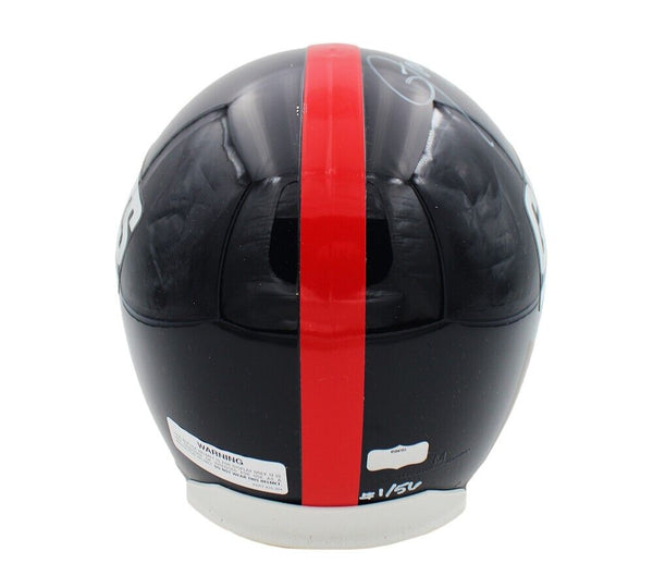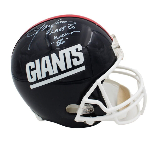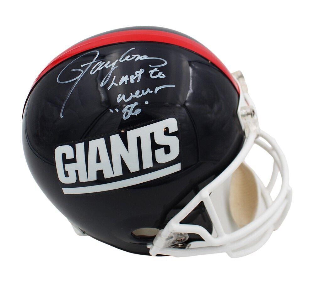 A New York Giants Throwback Replica Helmet hand signed by Lawrence Taylor. The item and signature are in excellent condition. In addition to signing his name, Lawrence inscribed "Last to Wear 56" on the item. *This piece is Limited Edition of 56. Buyer will receive a random number from the collection.* Lawrence is considered one of the greatest defensive players of All Time. He is a Hall of Famer, Super Bowl Champ, and Defensive NFL MVP AUTHENTICATION: The items is accompanied by Certificate of Authenticity, Serial Numbered and Databased Hologram, and picture of Lawrence from the Signing