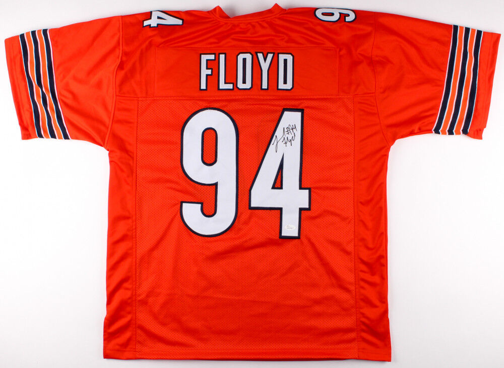 Custom on-field style jersey. Everything is sewn on, size XL. Hand-signed in black felt-tip pen by Leonard Floyd. The lot / autograph(s) includes an official James Spence Authentication (JSA) hologram and matching COA for authenticity purposes. The signing of this item was witnessed by JSA.Authentication: JSA COA