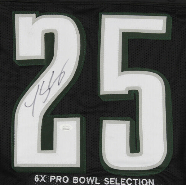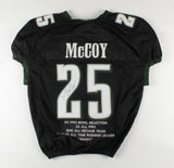 Custom on-field style jersey. Everything is sewn on, size XL. The jersey has been hand-signed in black felt-tip pen by LeSean McCoy. The lot / autograph(s) includes an official James Spence Authentication (JSA) hologram and matching COA for authenticity purposes. The signing of this item was witnessed by JSA.Authentication: JSA COA Shop our ebay store / Friendly Confines Collectibles for thousands of different autographed jerseys