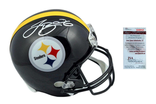 This signed item is brand new in box. This item will make a great gift or a great addition to any collection at an AFFORDABLE PRICE! ATHLETE: Leveon Bell ITEM: Pittsburgh Steelers Full Size Replica Helmet AUTHENTICATION: This item comes with a James Spence Authentication (JSA) Witnessed Certificate of Authenticity and serial #'ed hologram affixed to the item. To ensure authenticity, the hologram can be reviewed online. This process helps to ensure that the product purchased is authentic and eliminates any possibility of duplication or fraud.