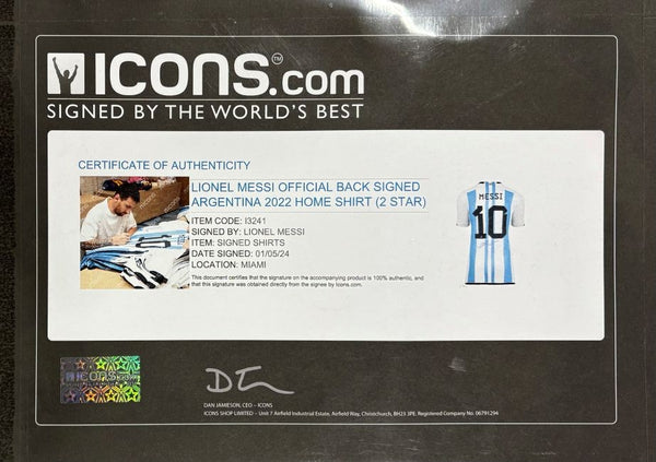 Featured is a Lionel Messi signed Argentina Adidas soccer jersey. This jersey has been hand signed by Messi and comes with the Beckett hologram and letter of authenticity. This jersey is size XL. This jersey has been professionally framed and matted and is approximately 32x42. This jersey would make a great addition to any sports memorabilia collection!. SPECIFICATIONS Autographed By: Lionel Messi Team: Barcelona Sport: Soccer Authentication: Beckett Grading Services