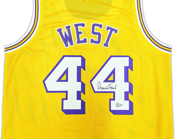 This is a Yellow Jersey that has been hand signed by Jerry West. This is a custom jersey with no name brand. The approximate size is XL. It has nice sewn in name and numbers. This item has been certified authentic by Beckett Authentication (BAS) and comes with their tamper-proof QR Code sticker that can be verified on beckett-authentication.com.