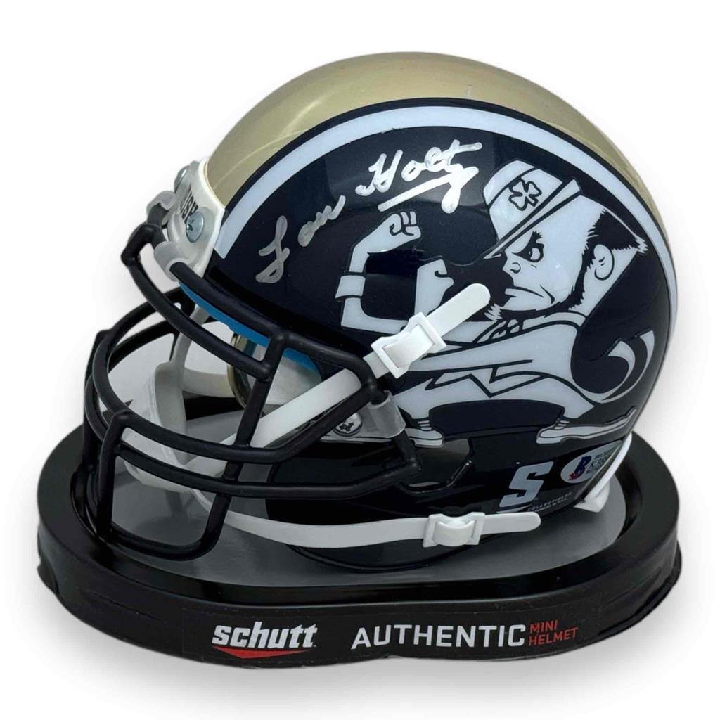 This signed item is brand new in box. This item will make a great gift or a great addition to any collection at an AFFORDABLE PRICE! ATHLETE: Lou Holtz ITEM: Notre Dame Fighting Irish Limited Edition Mini Helmet AUTHENTICATION: This item comes with a Beckett Authentication serial #'ed hologram affixed to the item. To ensure authenticity, the hologram can be reviewed online. This process helps to ensure that the product purchased is authentic and eliminates any possibility of duplication or fraud. This item was signed in the presence of a Beckett representative. *We do at times list a stock image of the product. This is done to expedite the listing process and only applies for merchandise that is comparably identical. While the photo(s) serve as a representation of the item, please be aware that variations may occur in the size, placement, and intensity of the signature. Since each item is hand-signed, every autograph is one-of-a-kind.