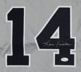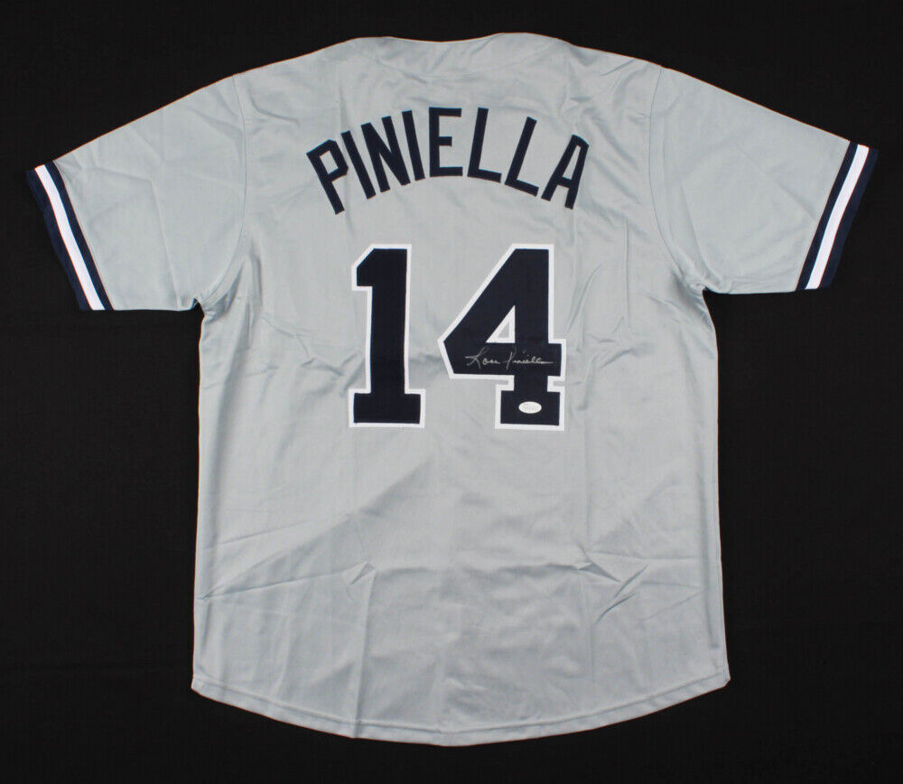 Custom on-field style jersey. Everything is sewn on, size XL. Hand-signed in silver paint pen by Lou Piniella. The lot / autograph(s) includes an official James Spence Authentication (JSA) hologram with QR Code Card for authenticity purposes. The signing of this item was witnessed by JSA.Authentication: JSA Hologram with QR Code Card