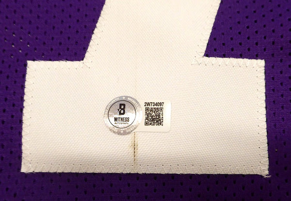 This is a Purple Jersey that has been hand signed by Patrick Peterson. This is a custom jersey with no name brand. The approximate size is XL. It has nice sewn in name and numbers. There are marks on the item as shown. This item has been certified authentic by Beckett Authentication (BAS) and comes with their tamper-proof QR Code hologram.