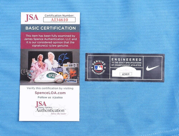 Custom on-field Nike Style jersey. Everything is sewn on, size XL. Hand-signed by Luis Castillo (Cincinnati Reds, Seattle Mariners)The autograph includes an official James Spence Authentication (JSA) hologram and matching COA for authenticity purposes.Authentication: JSA COA