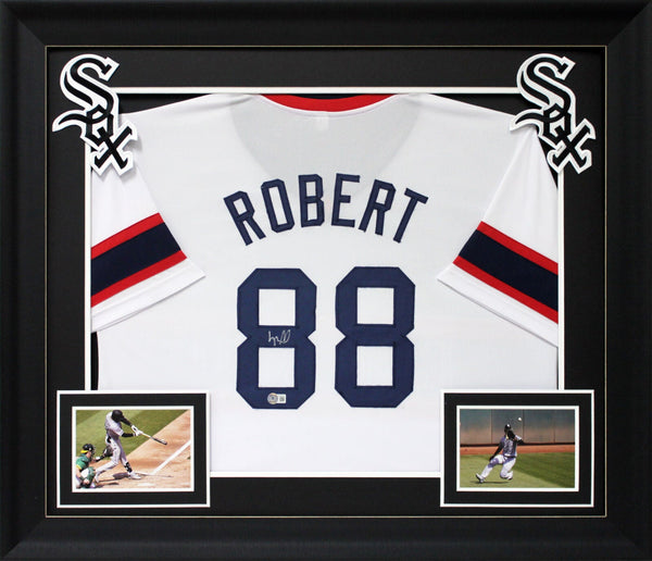 This Autographed White Throwback Pro Style Framed Jersey has been Personally Signed by Luis Robert of the Chicago White Sox. This item is 100% Authentic to include a hologram by Beckett Authentication Services. This item will come with an affixed Beckett Authentication Services (BAS) authentication sticker, which includes a scannable QR code to verify authenticity. Please note that Beckett no longer provides serial-numbered COA cards, and the attached BAS sticker will serve as the complete authentication for this item. This is a BAS Witnessed Protection Program item which means a Beckett Authentication Service representative was present when this item was being signed. We conducted an autograph signing with Luis Robert where multiples of the same item were signed. While the photographs are representative of this item, the size, placement and strength of the signature may vary. Each item is hand signed, therefore, each autograph is unique. This item can be verified through BAS Witnessed. This item has been professionally framed to overall dimensions of approximately 32 x 37 inches. This is a X-Large sized, non-branded, custom-stitched Framed Jersey. This jersey will be framed to order, it will take 3-4 days from purchase date for it to ship.