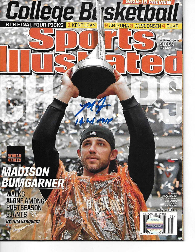 Madison Bumgarner Signed Giants Sports Illustrated 11/10/14 W/14 WS MVP Beckett
