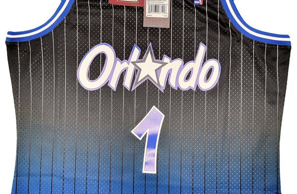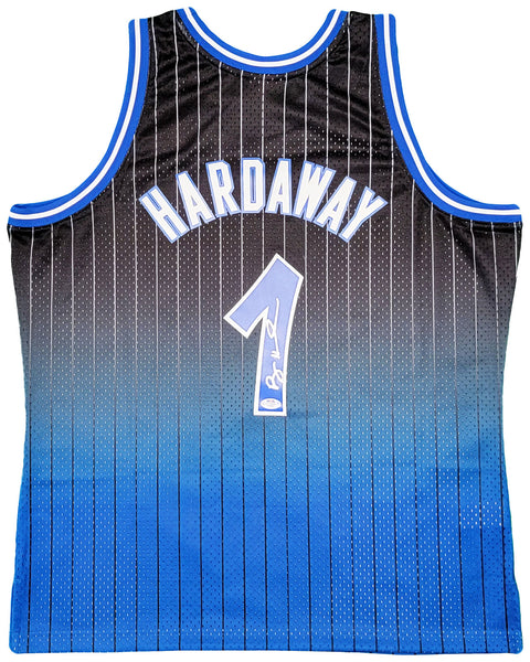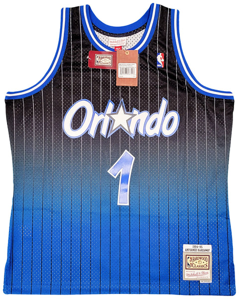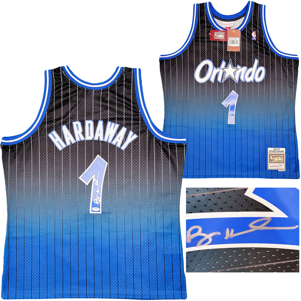 This is a Black & Blue Authentic Mitchell & Ness Orlando Magic Fadeaway 1994-95 Hardwood Classic Swingman Jersey that has been hand signed by Anfernee Penny Hardaway. This jersey is Size XL. This item has been certified authentic by PSA/DNA and comes with their tamper-proof sticker and matching certificate of authenticity.