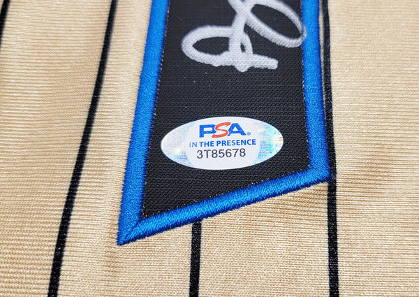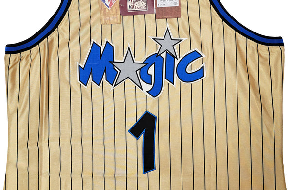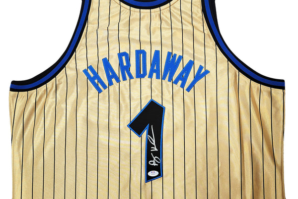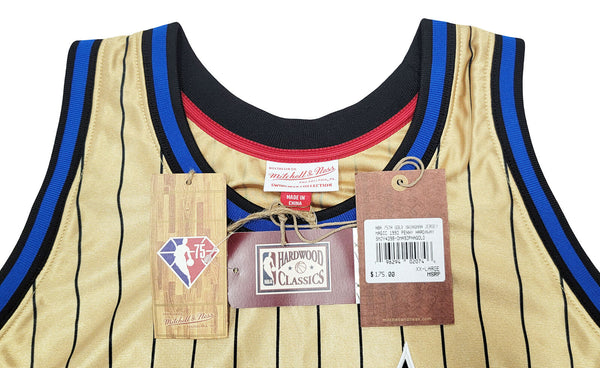 This is a Gold Authentic Mitchell & Ness Orlando Magic 1993-94 75th Anniversary Hardwood Classic Swingman Jersey that has been hand signed by Anfernee Penny Hardaway. This jersey is Size XXL. This item has been certified authentic by PSA/DNA and comes with their tamper-proof sticker and matching certificate of authenticity.