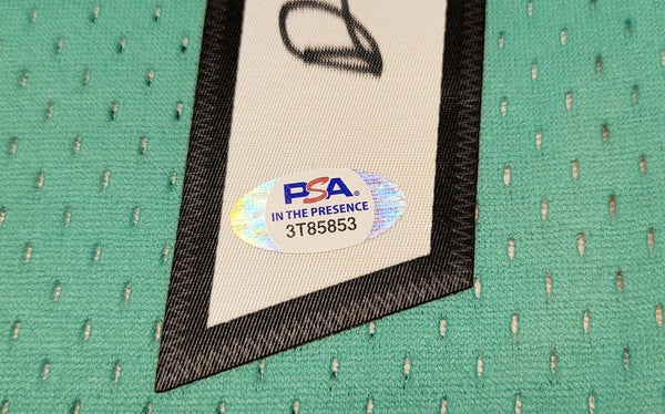 This is a Teal Authentic Mitchell & Ness Orlando Magic All Star Game Feb 11,1996 Hardwood Classic Swingman Jersey that has been hand signed by Anfernee Penny Hardaway. This jersey is Size L. This item has been certified authentic by PSA/DNA and comes with their tamper-proof sticker and matching certificate of authenticity.