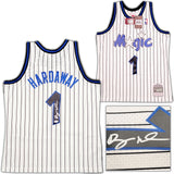 This is a White Authentic Mitchell & Ness Orlando Magic 1993-94 Hardwood Classic Swingman Jersey that has been hand signed by Anfernee Penny Hardaway. This jersey is Size L. This item has been certified authentic by PSA/DNA and comes with their tamper-proof sticker and matching certificate of authenticity.