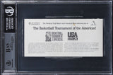 This Autographed 1992 Basketball Tournament Of The Americas Ticket Stub with the inscription of "92 Gold (Johnson)" has been Personally Signed by Magic Johnson & Larry Bird. This item is 100% Authentic, it comes slabbed and authenticated by Beckett Authentication Services. The authenticity can be verified on Beckett Authentication Services website.